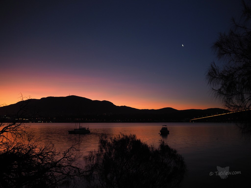 The sun sets behind Kununyi and reflects across the River Derwent on an almost cloudless evening in Hobart, the end on another beautiful day in paradise. Taken near Rosny Point.