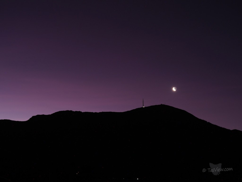 On the way home after taking the previous post’s sunset, I just had to stop again as the moon hung over the mountain chasing the last glow of the sun.