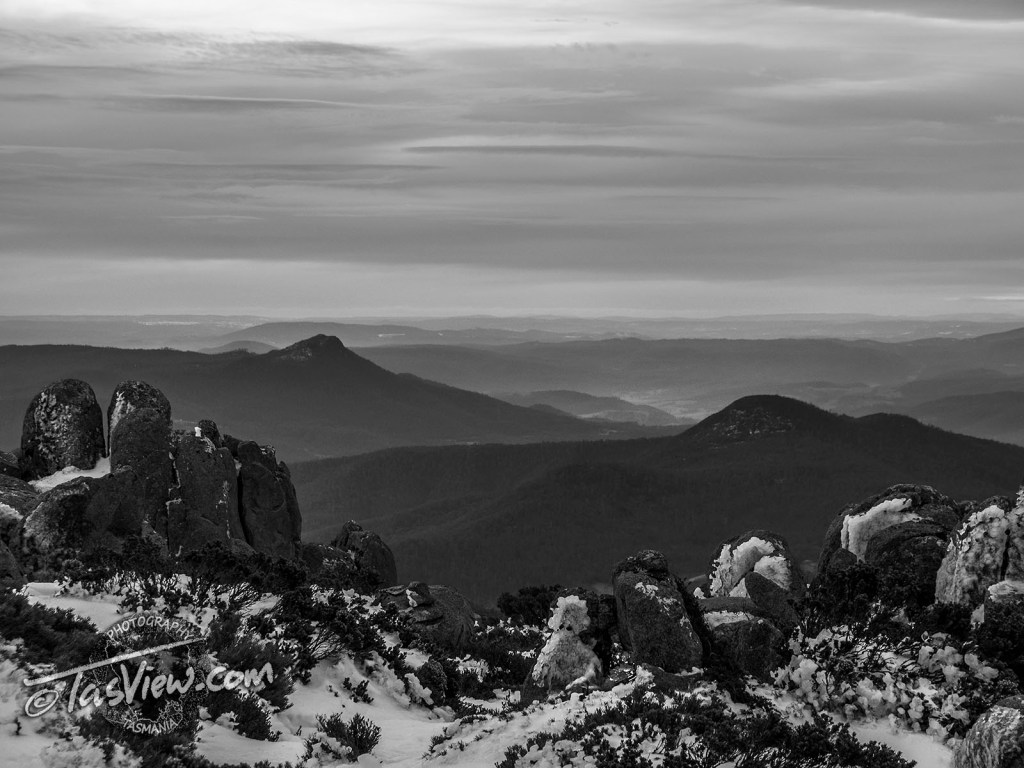 Final series of evening images from atop the Mount – kunanyi. I edited these over a few nights, varying from natural colour, monochrome and over-saturated to bring out that colourful sky. I whittle it down to 9 final images.