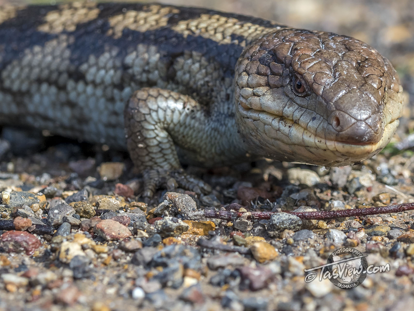 Spotted first by trail dog Benny-Boy, this Blue Tongue Lizard was somewhat camera shy. Though he poked his blue tongue out a few times, I miss timed with the shutter every time. Here’s a few shots as he waddled by, before slipping into the bush, after saying “hi”.