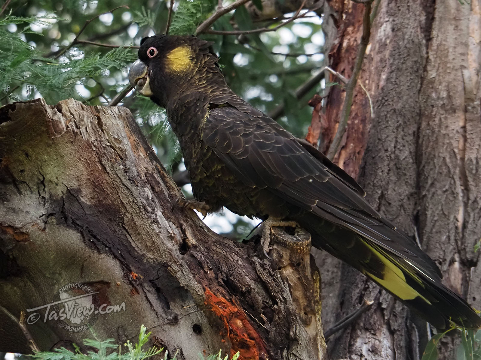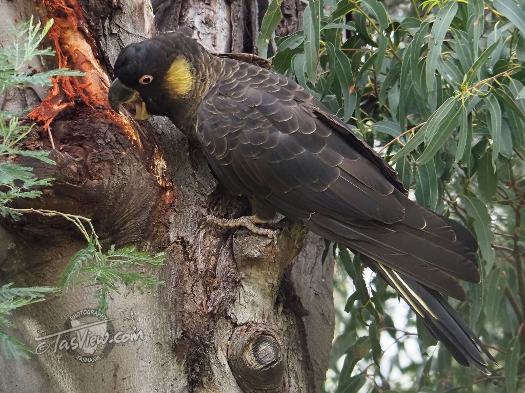 I got lucky this morning with two Black Cockatoos in a Silver Wattle. Only about 12 feet away from me, they kept looking for grubs and didn’t fly off!