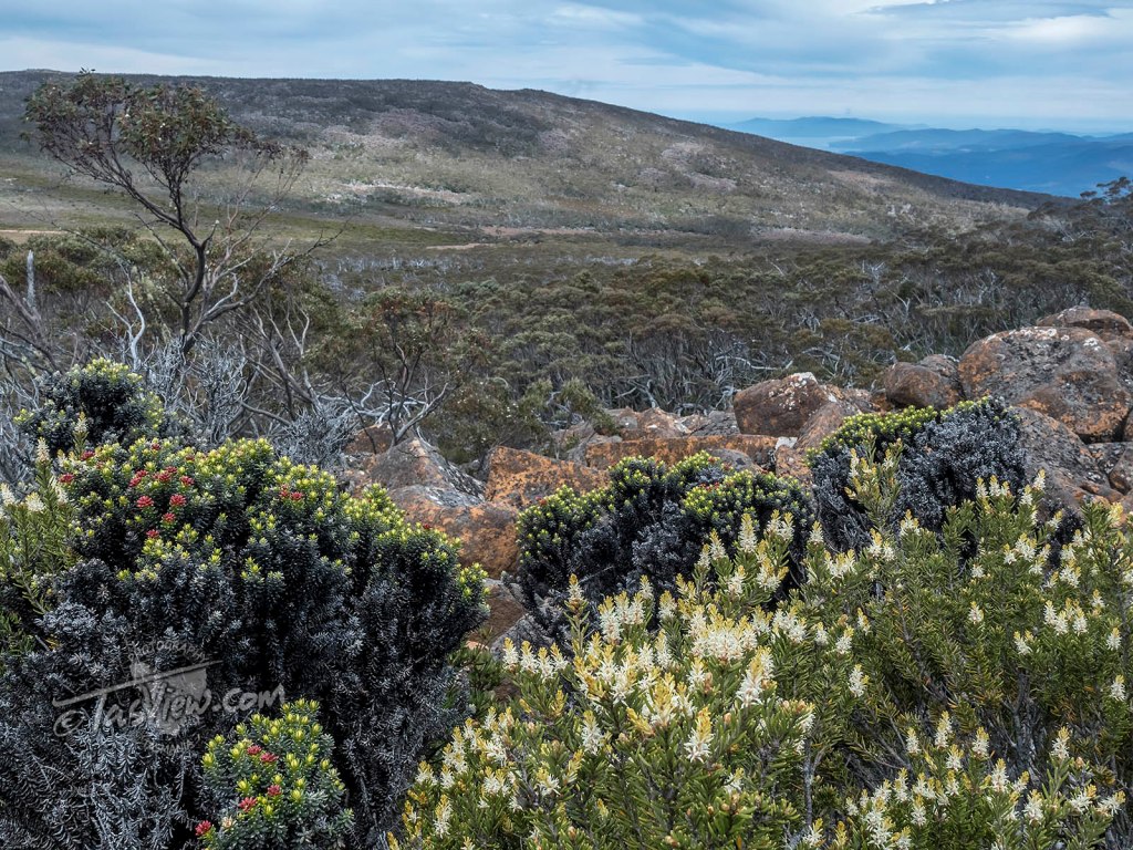 It’s completely different over the back of the mountain, low alpine shrubs and stunted, twisted trees weather-beaten with high winds, extreme cold and hot temperatures, it’s kind of almost desert like.