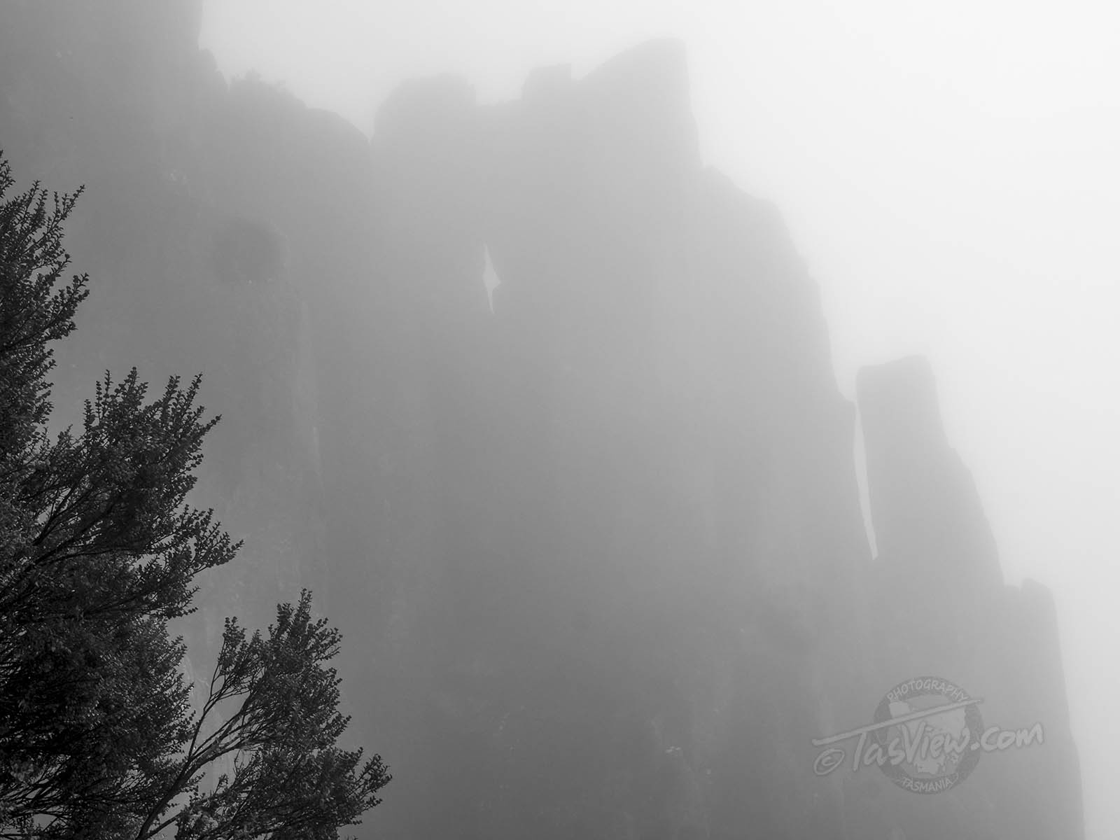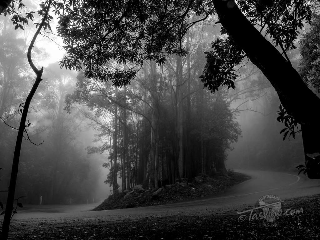 Driving in thick cloud, my first stop was Shoobridge Bend below The Springs on kunanyi / Mt Wellington for a mono shot.