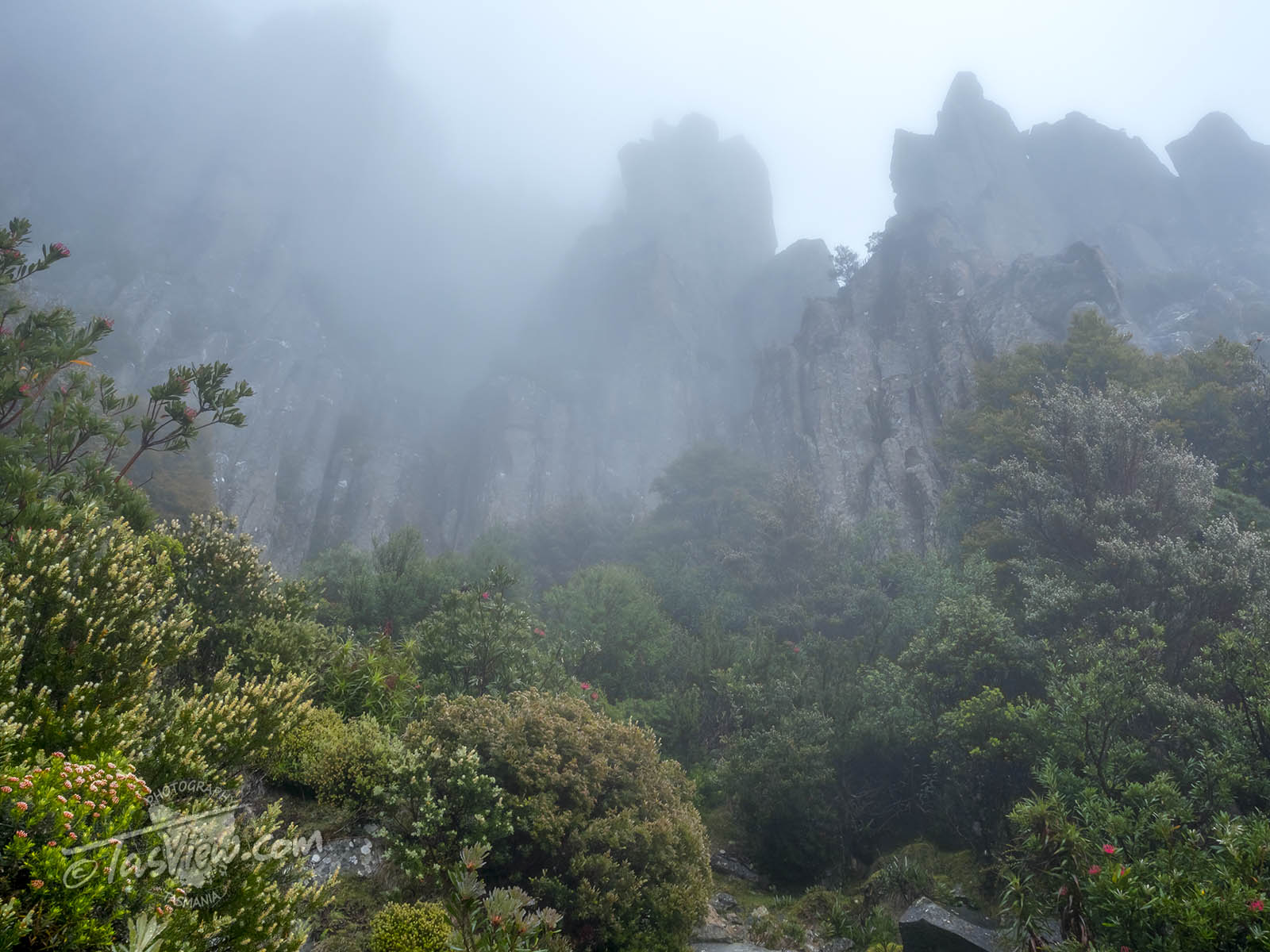 As the mist rolled in, I focused on the closer details. The Tasmanian Waratah here grow differently than that near Thark Ridge, being more protected from the harsher inclement westerly weather and hot afternoon sun, they enjoy a relatively more stable micro-climate.