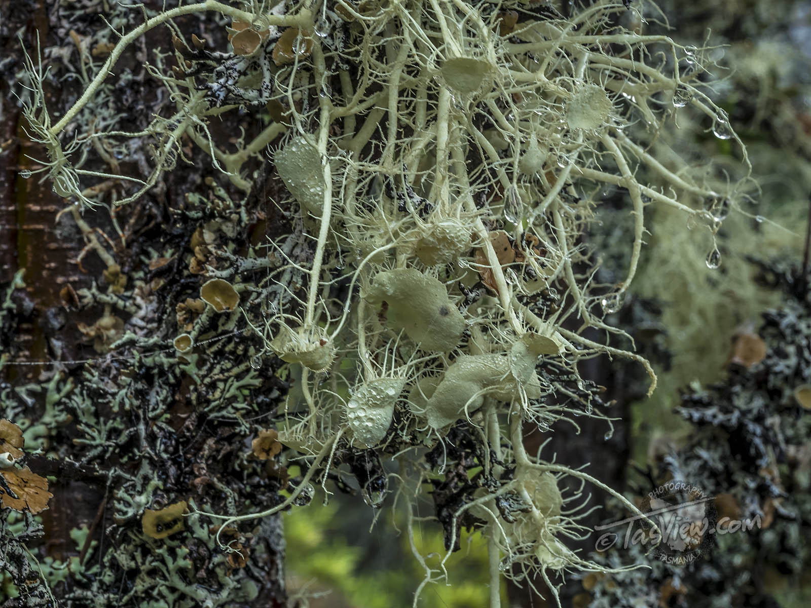 The white plants are light green lichen growing on tree branches. In the second last shot the appear to be fruiting (I guess) and I’d never seen them do that before.