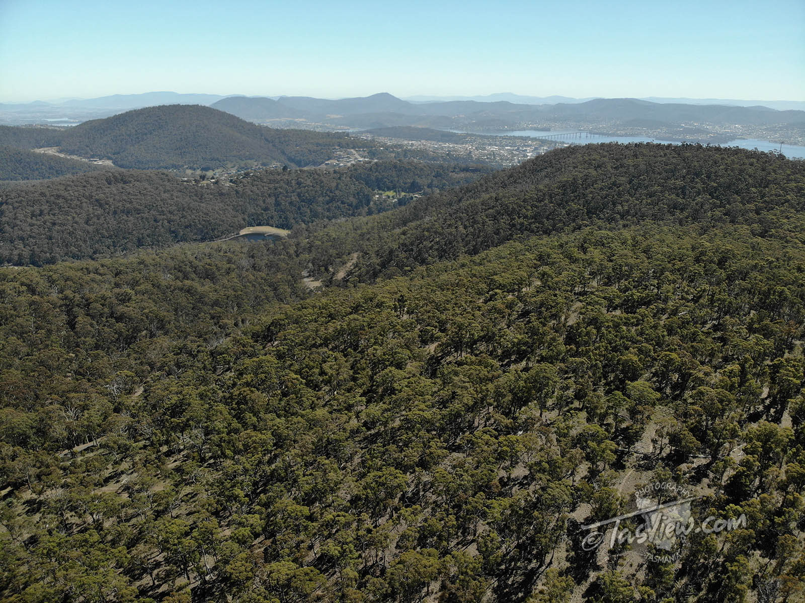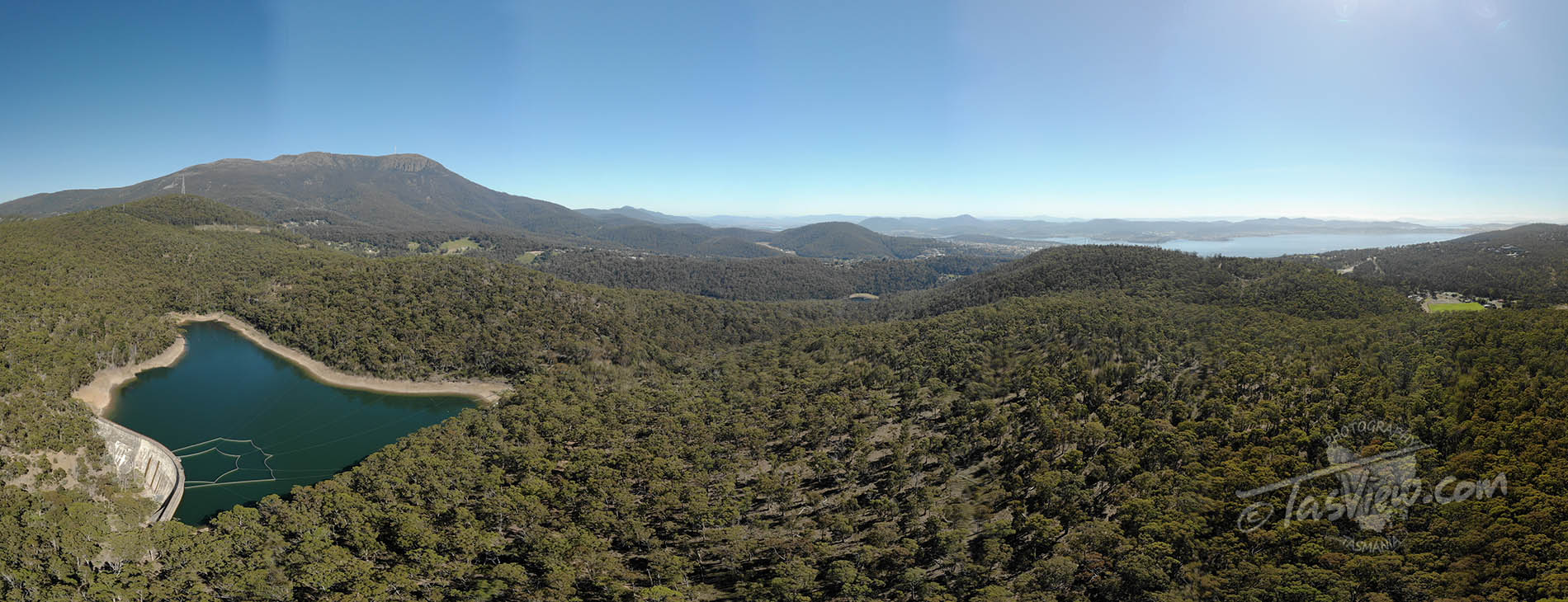 Hobart and the upper reaches of the River Derwent to the right.