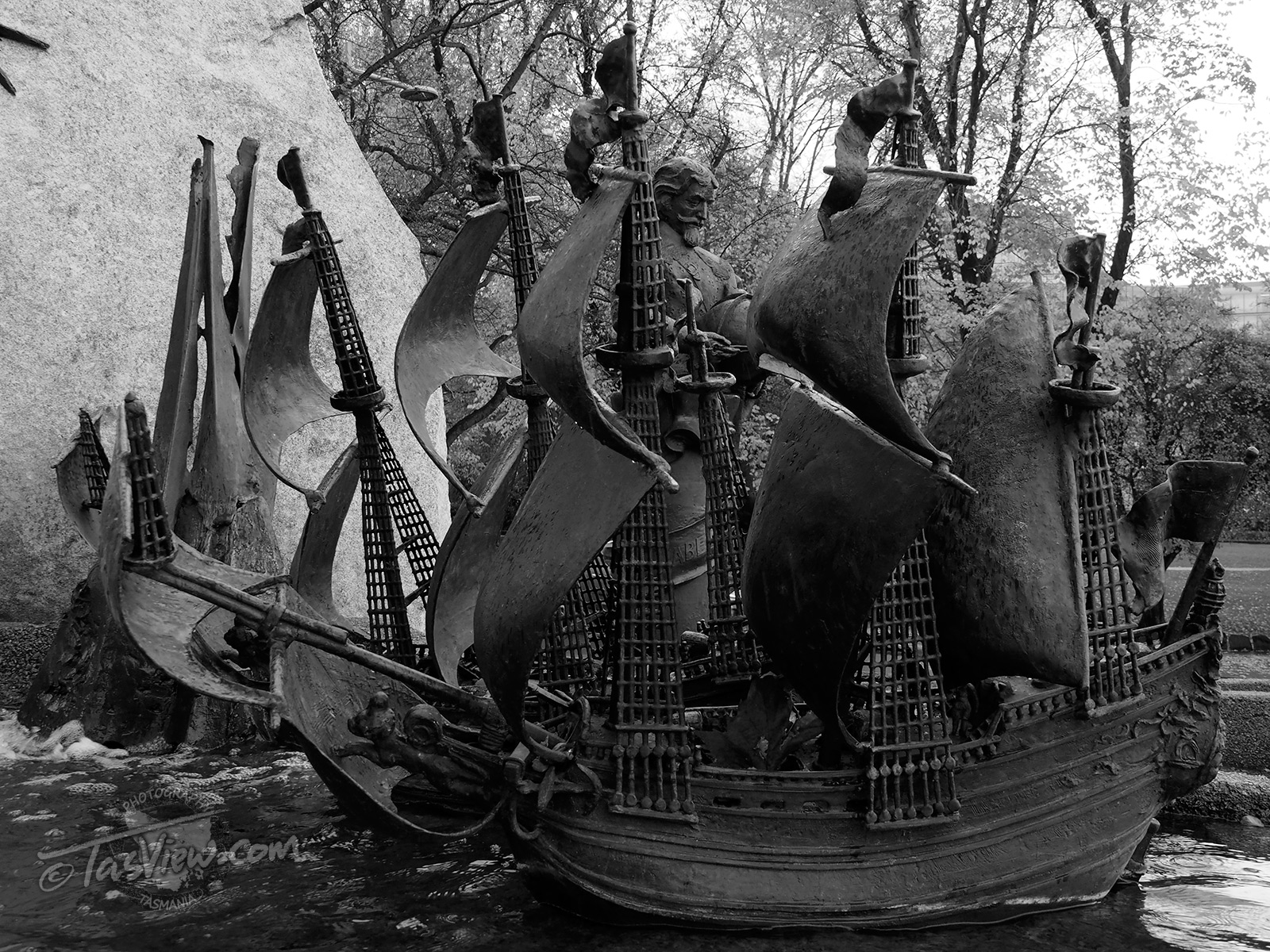 1. Those first two sculptures (of the boat and the guy) – what are they made of? Metal? Clay? Rock? Is that boat in the water? It’s hard to tell in b/w when I don’t know the context of the scene.