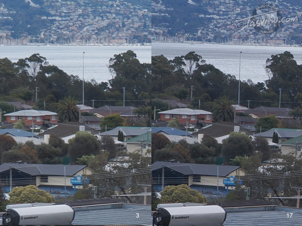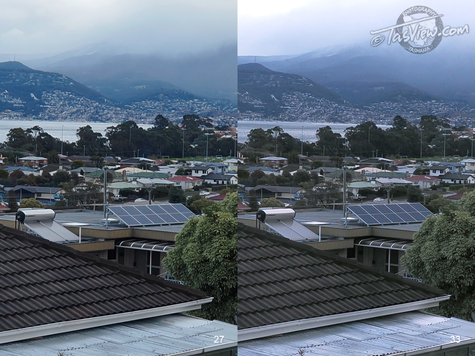 To finish up, a cropped and edited image of the view, the only pic where the cloud lifted enough to make out a hint of snow on kunanyi/Mt Wellington – can you guess which lens?