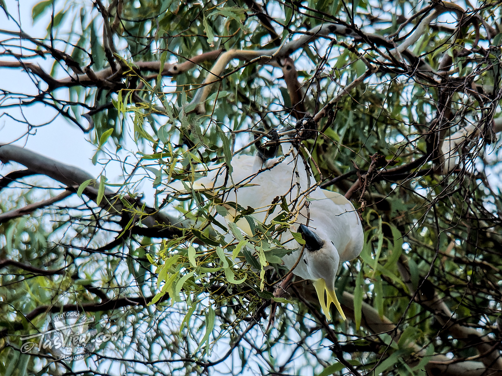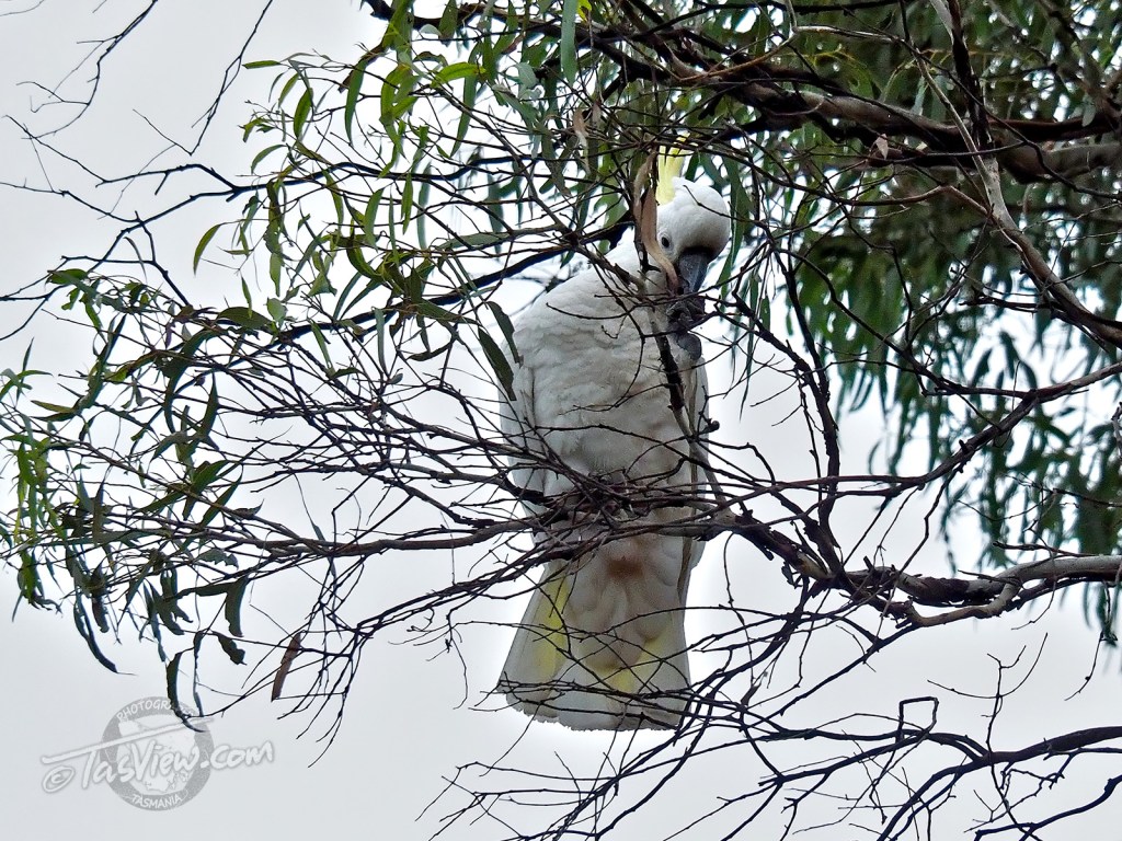 (3 pics) – Though noisy groups of Sulphur Crested White Cockatoos often visit our valley, I rarely get close enough for a photo, they often just fly through or rest in a tree high overhead. These one’s were taken on The Queens Domain – a patch of bush on a hill near Hobart.