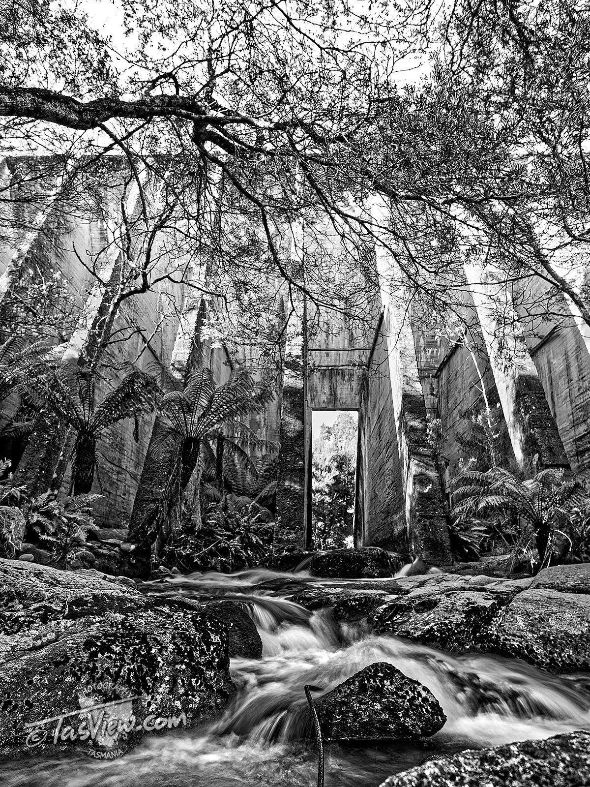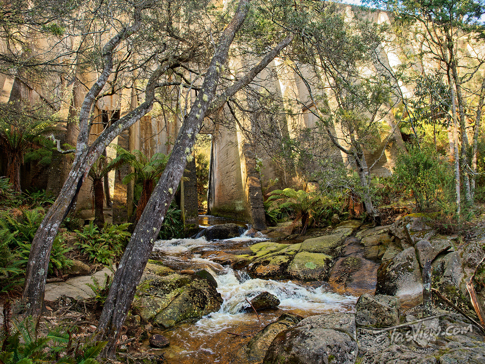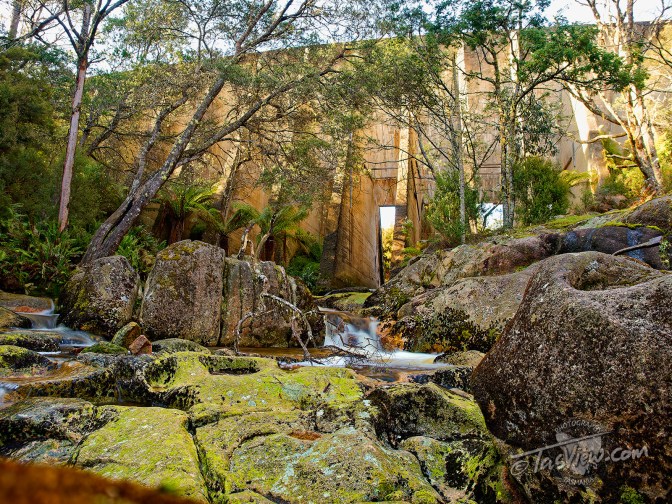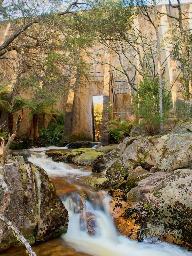 Built in 1937 across the Cascade River using only shovels and wheelbarrows, the Mount Paris Dam Wall is the only surviving pillar and slab dam in Tasmania. Originally named the Morning Star Dam, an 11 Km water race connected it with the Mt Paris Mine.
