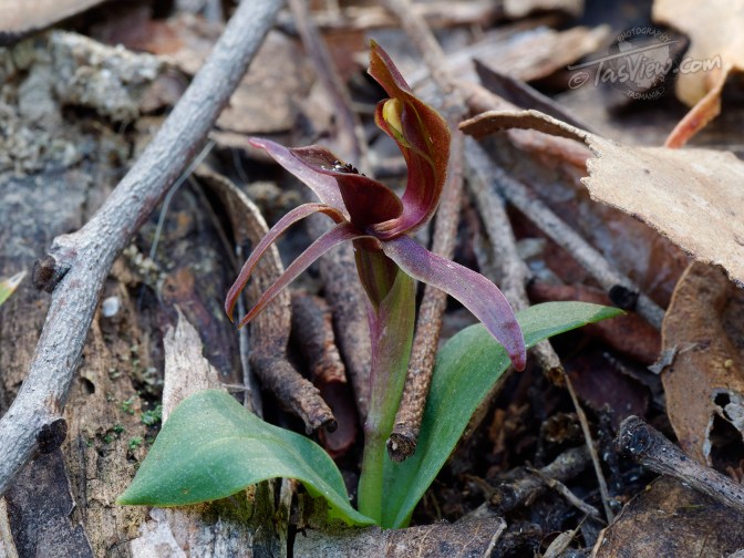 The Chiloglotis gunnii – Tall Bird Orchid, is another Tasmanian Orchid that can be hard to spot and is quite different than the Greenhood in my previous post, though it grows in the same area.