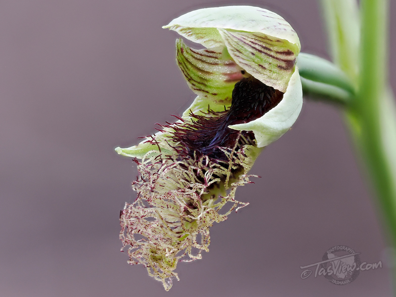 This orchid, which you showed us yesterday in a closed state, is really very special. The long hairy lip is especially striking.