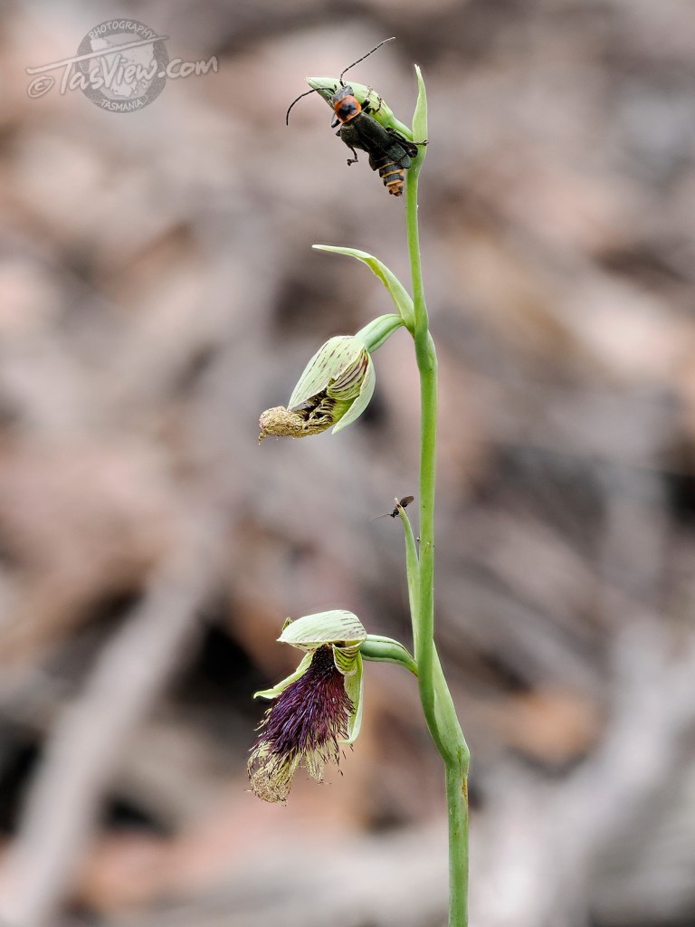 The visitor was contributing to continuation of the Bearded Orchid: Beetles are notable pollinators.