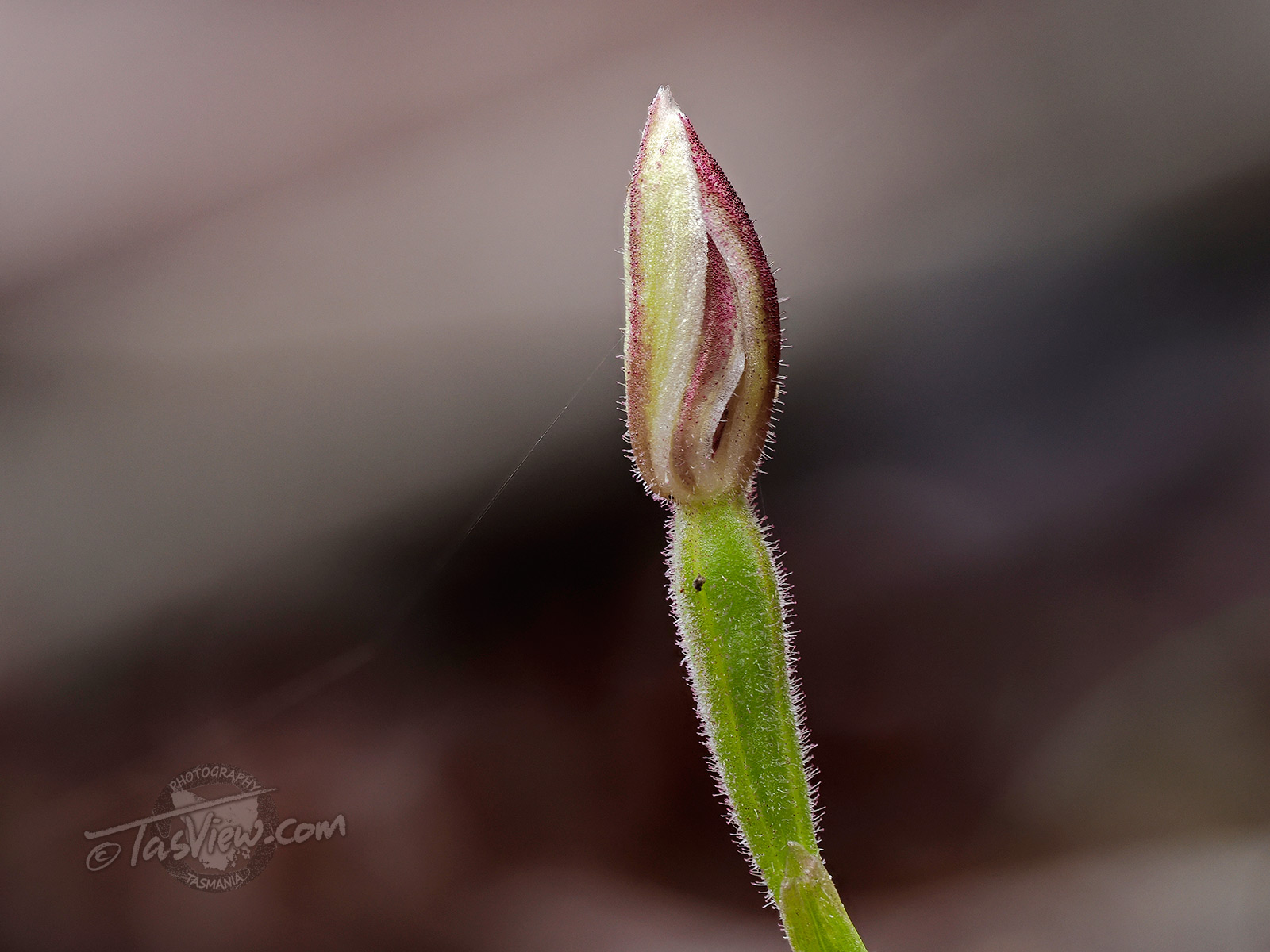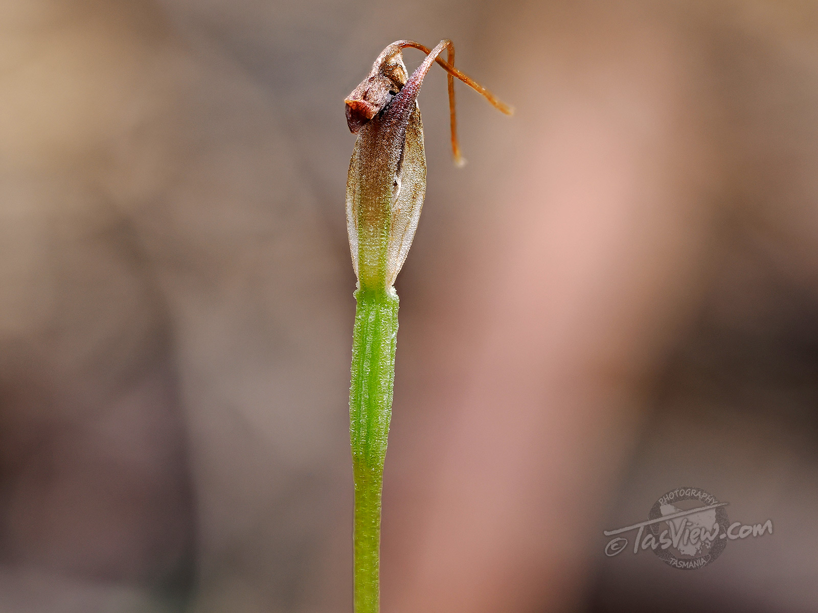 There are three species of orchid in one small area about 12 feet square. Two of them are quite similar, but this small one has one thin grass like leaf.