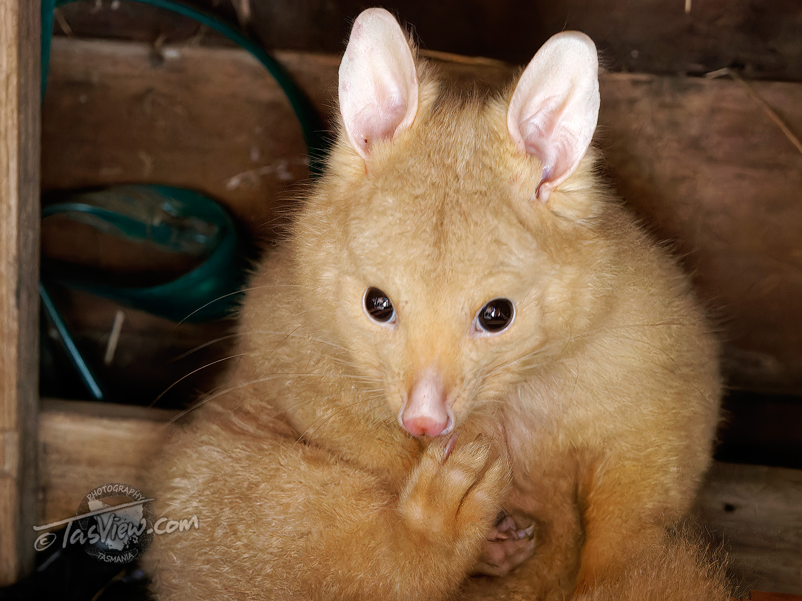 My host told me about this beautiful Golden Brush-tail Possum sometimes sleeping in their shed. One day when I opened the shed door, this adorable fur ball stared back at me!