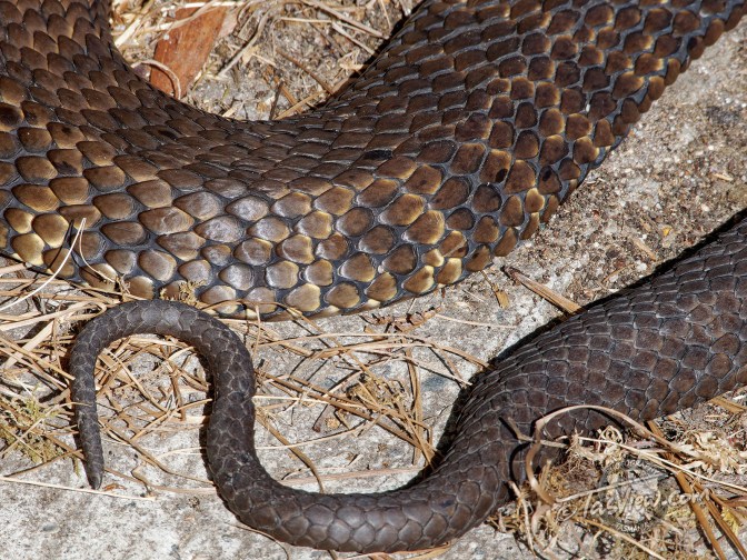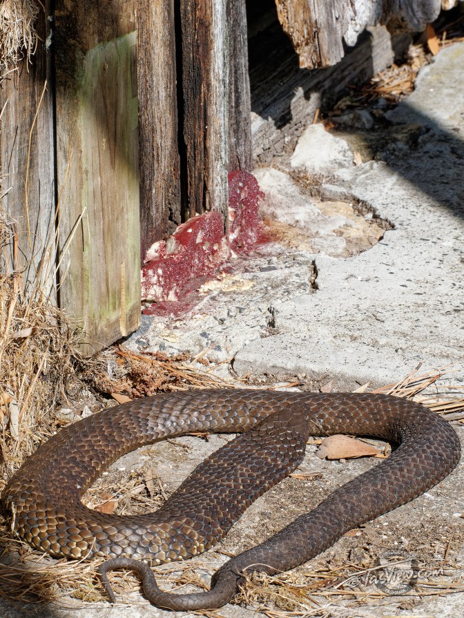Eventually, I couldn’t resist touching her, and felt her tail three times yesterday, (madness I know) twice while she was 3/4 of the way retreating into the hole, and once more foolishly, while she was out but still sluggish. While she didn’t come at me, she reminded me to respect her space, and that she could kill me.