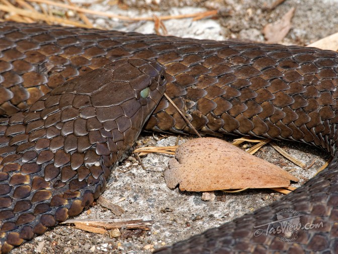 So, we had Tickles the Tasmanian Tiger Snake “relocated” last week, not sure where he dropped her off, but it took her 8 days to get back home! She clearly likes it here, or likes me ๐