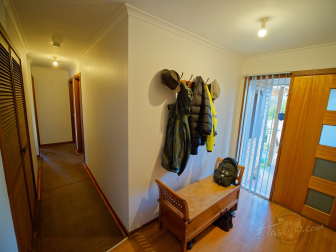 The door to the left leads outside. Through the door to the right of the bottle rack, we come to the front entrance and passage way. I have already taken out the carpet as it was pretty rank and currently have exposed the chipboard flooring. It’s given my a much better idea of what I’m dealing with and the place feels so much cleaner and healthier! I’m glad it’s getting some air before it gets covered over again. I was going to make a coat/hat rack, but found this one at the hardware store. I will probably modify it down the track.