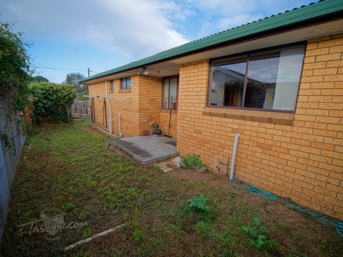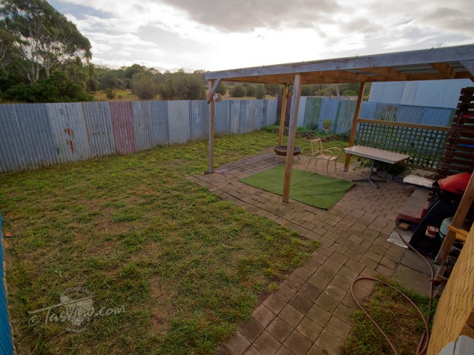 We walk through the gate above into the small back yard below, with covered BBQ area and a blank canvas with plenty of scope for landscape garden improvement, but it’s a great usable area as it is, now I have the “lawn” under some sort of control. I have plenty of ideas for this space, but that will be later. I put up a clothesline under the roof which has worked out great!