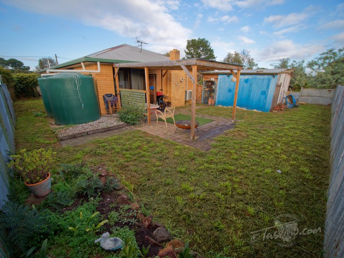 The real estate listing did it absolutely no favours and when I first viewed it privately with low expectations, I was immediately pleasantly surprised. I photographed it here honestly, as it is, rubbish day, ordinary weather. I used the Laowa 7.5mm lens on my OM1 which gives a roughly 90 degree view without much distortion. You can see over the side fence below that I have lots of space next door! It can’t be subdivided and is unlikely to ever be built on as it’s part of a 60 acre block!