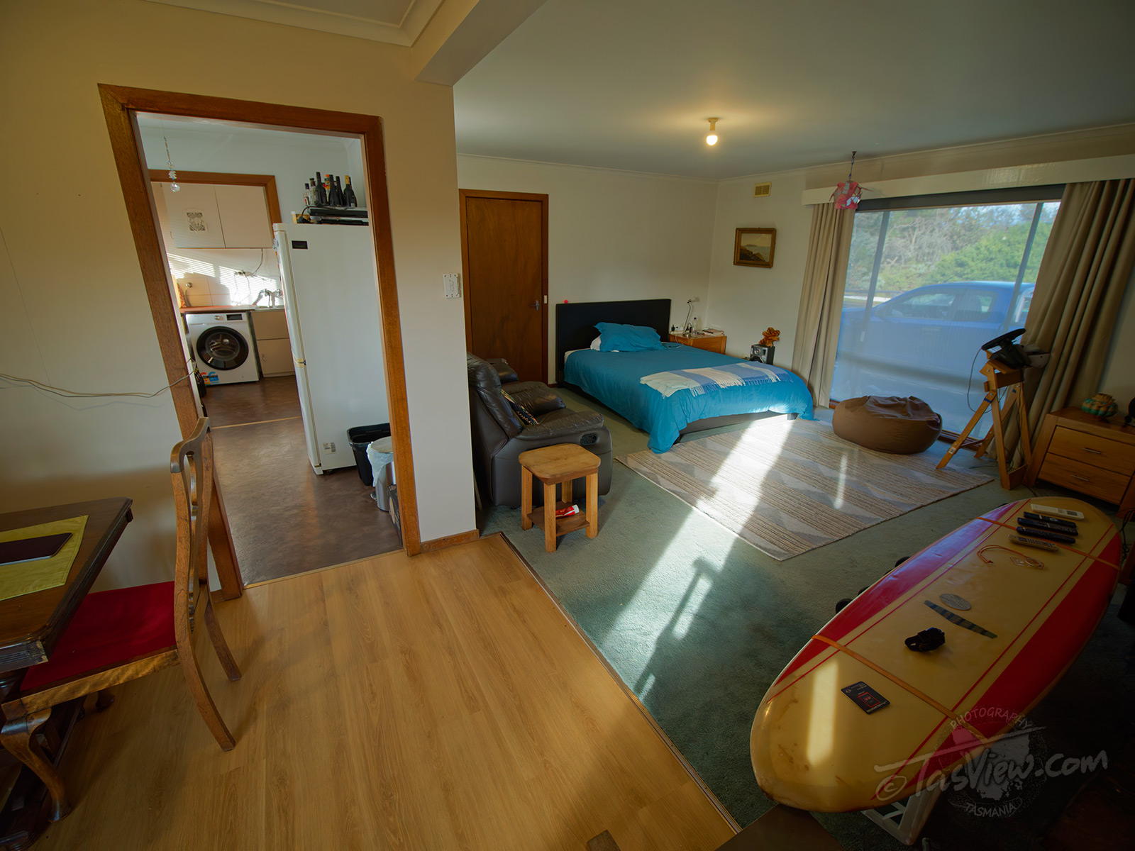 Am I boring you yet? Looking back into my lounge/bedroom, I threw together a coffee table made out of a ’70s sufboard I had and some milk crates. Though I haven’t used my five boards in probably 30 years, kind of lucky I held onto them! They will get wet eventually. The little blackwood coffee table was a grade 10 design project.
