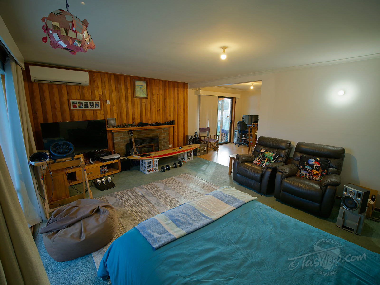 NOW, let’s head inside. We’ll start off in the lounge-room, which is also currently my bedroom! It made sense, as I’m painting and carpeting the three bedrooms, it’s silly to keep moving stuff. It’s also getting colder, so I only have one area of the house to heat over winter and I can take my time. Originally I considered building a tiny home or containter home, so this place is MUCH larger than I need or had anticipated.