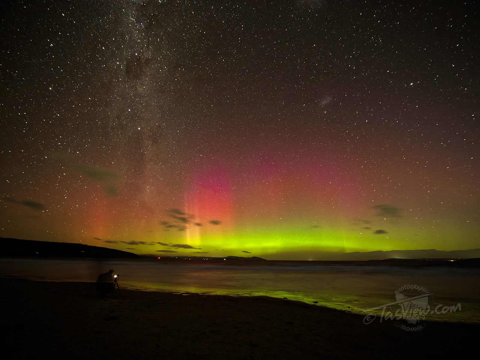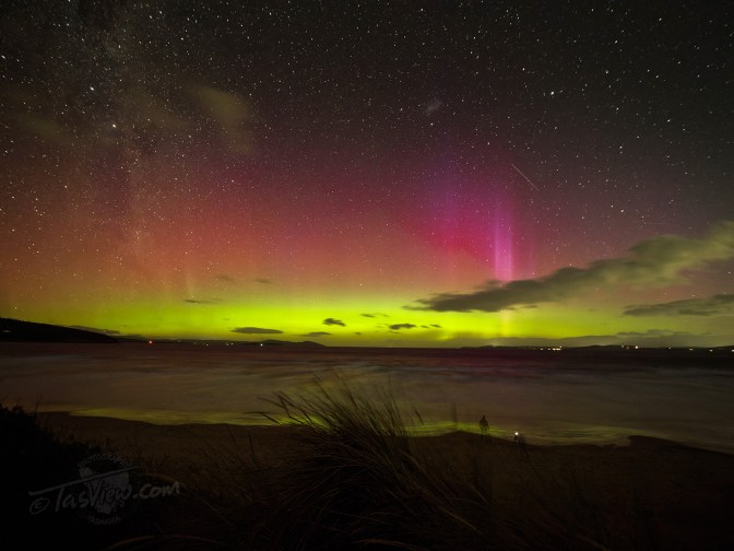 I thought I’d just check the sky after dinner before having an early night, beams were visible to the naked eye from my front deck, so off to the beach instead!